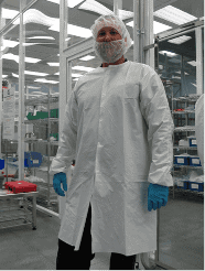 Chief among the protocols for maintaining the integrity of the clean room is the Gowning Procedure for entry into the controlled environment. Keller has a SOP and slide deck that must be reviewed, understood, and followed strictly by everyone prior to entering the Gowning Room. Once inside, a very specific sequence of actions (gown, gloves, booties, hair and face net) is completed in the Gowning Room before entrance to the clean room is permitted.